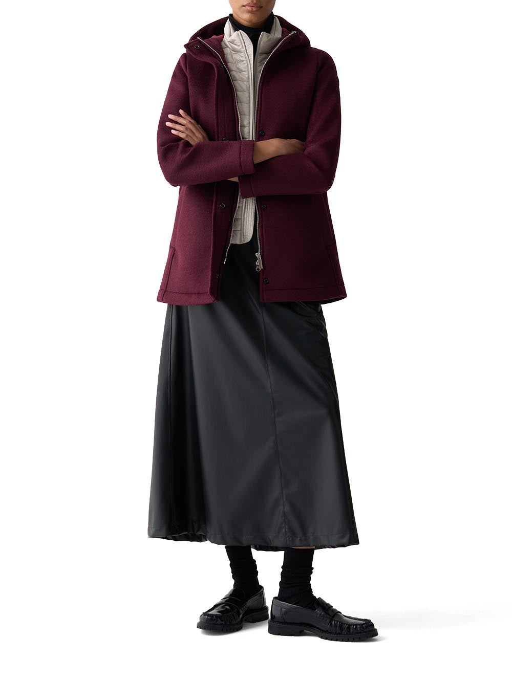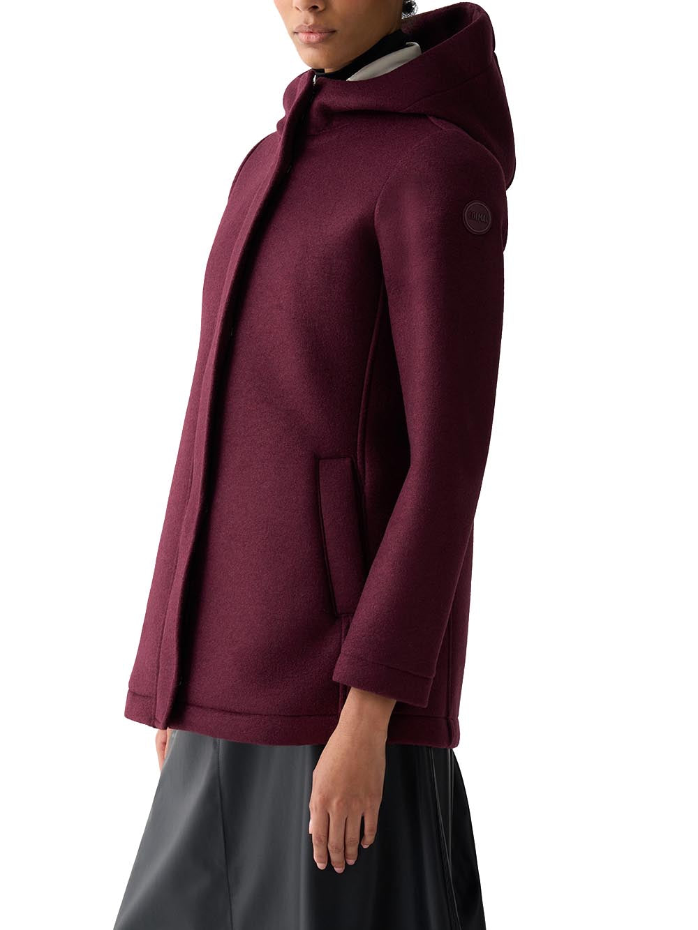 Cappotto in panno di lana con cappuccio