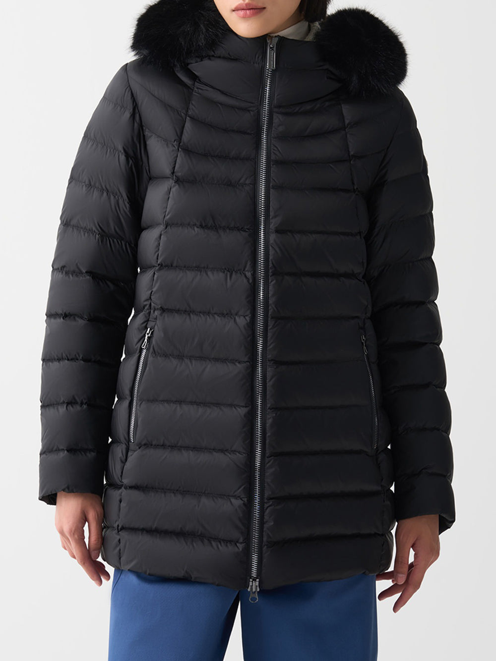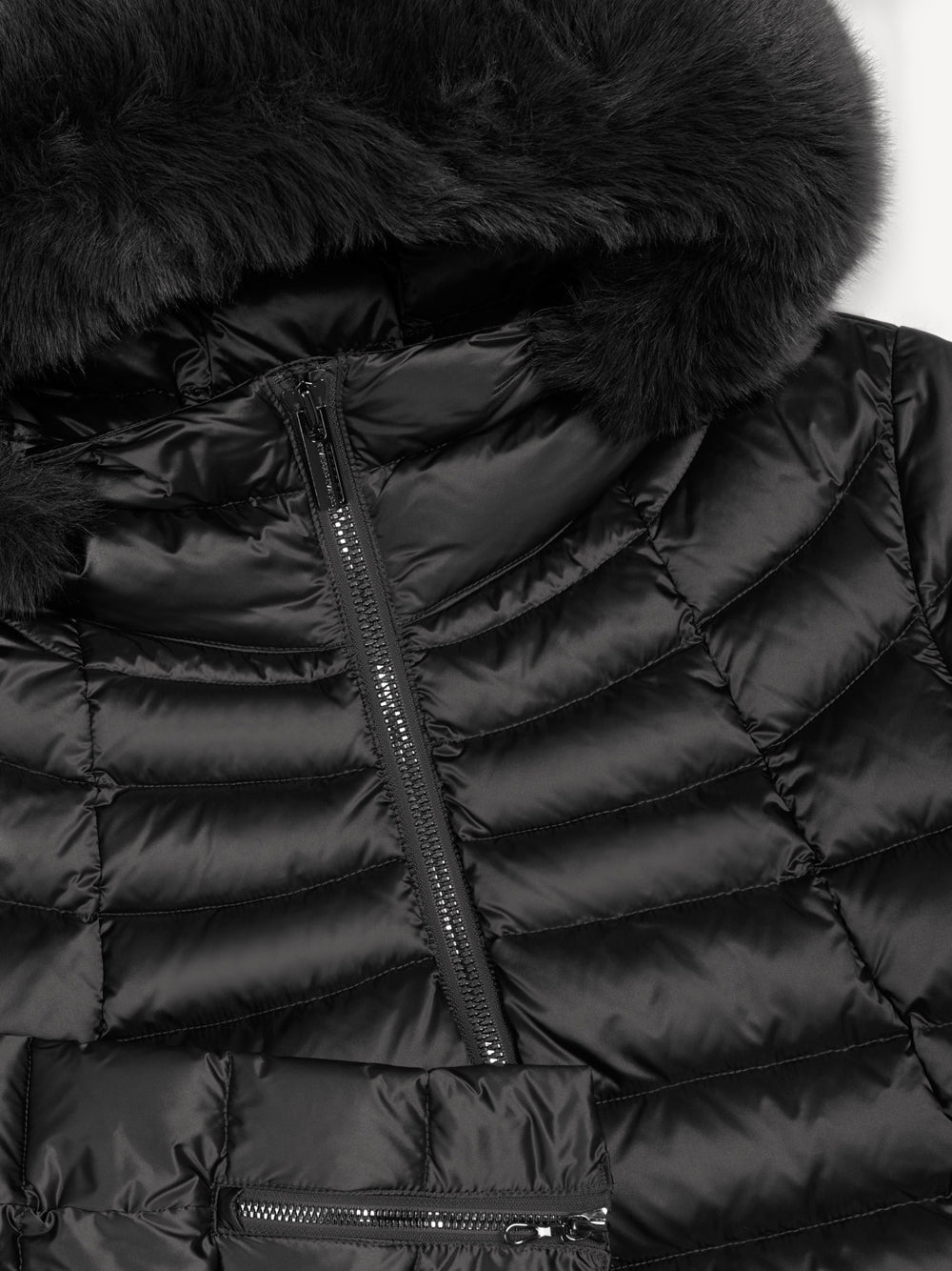 Piumino trapuntato con cappuccio di pelliccia