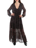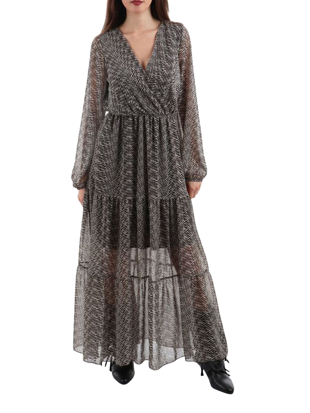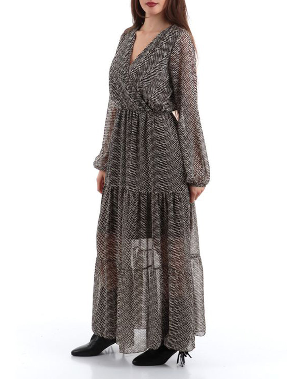 Abito scollo a v intrecciato con dettagli velo fantasia panna e moro