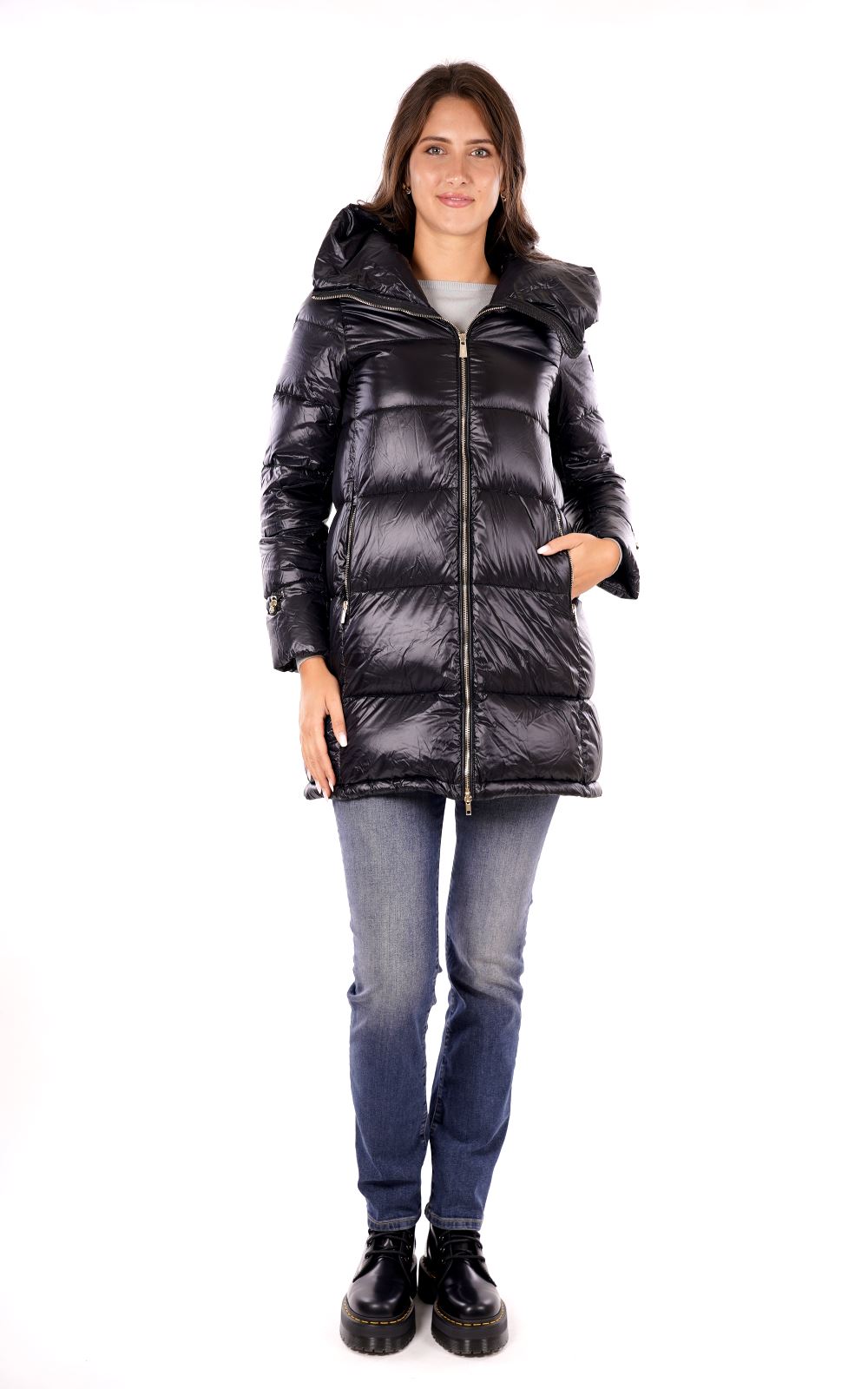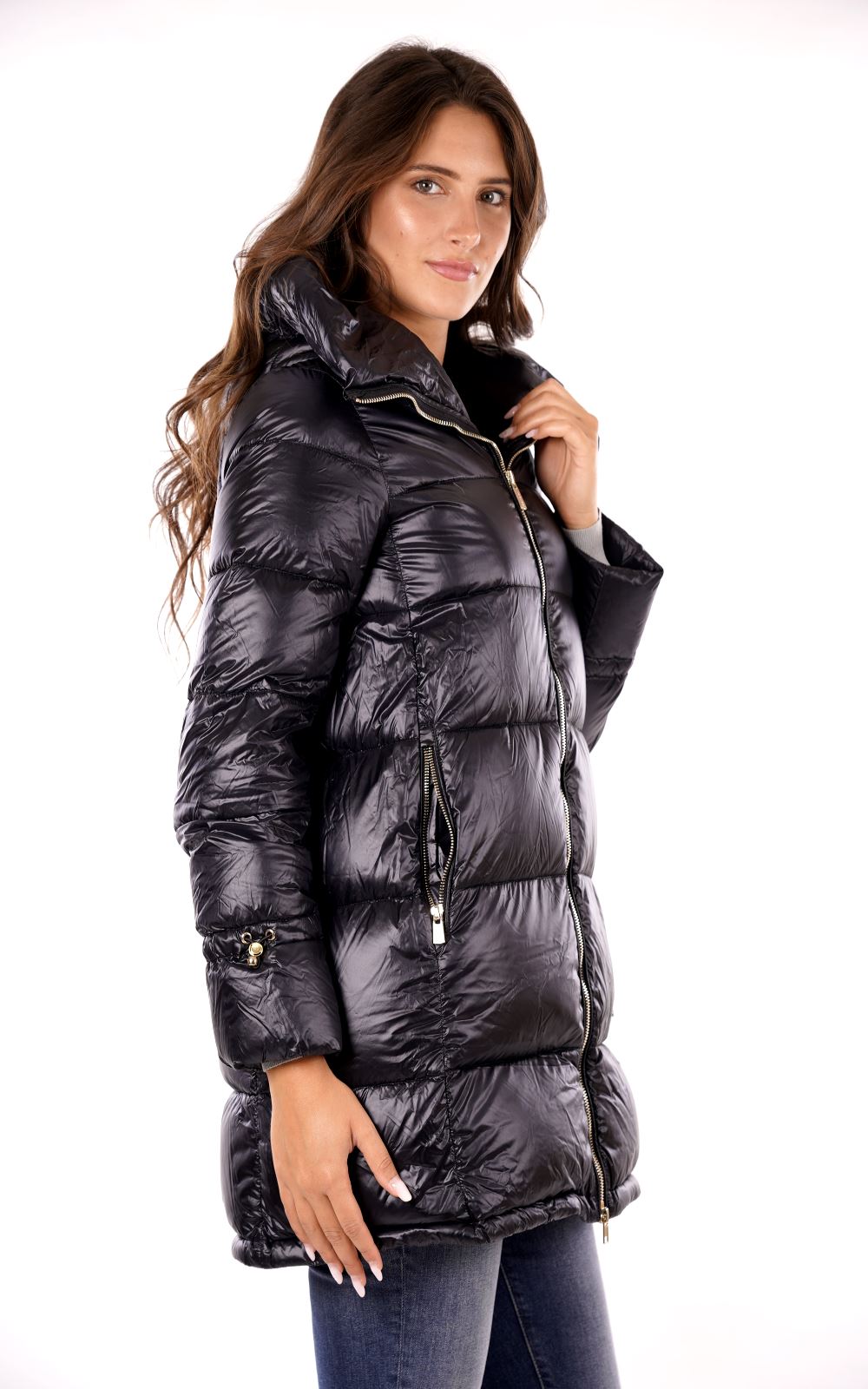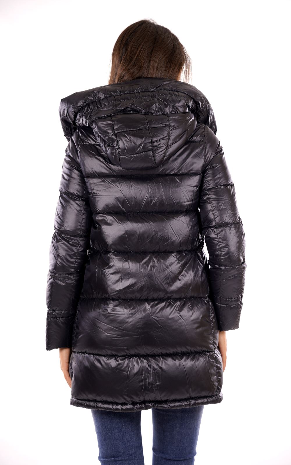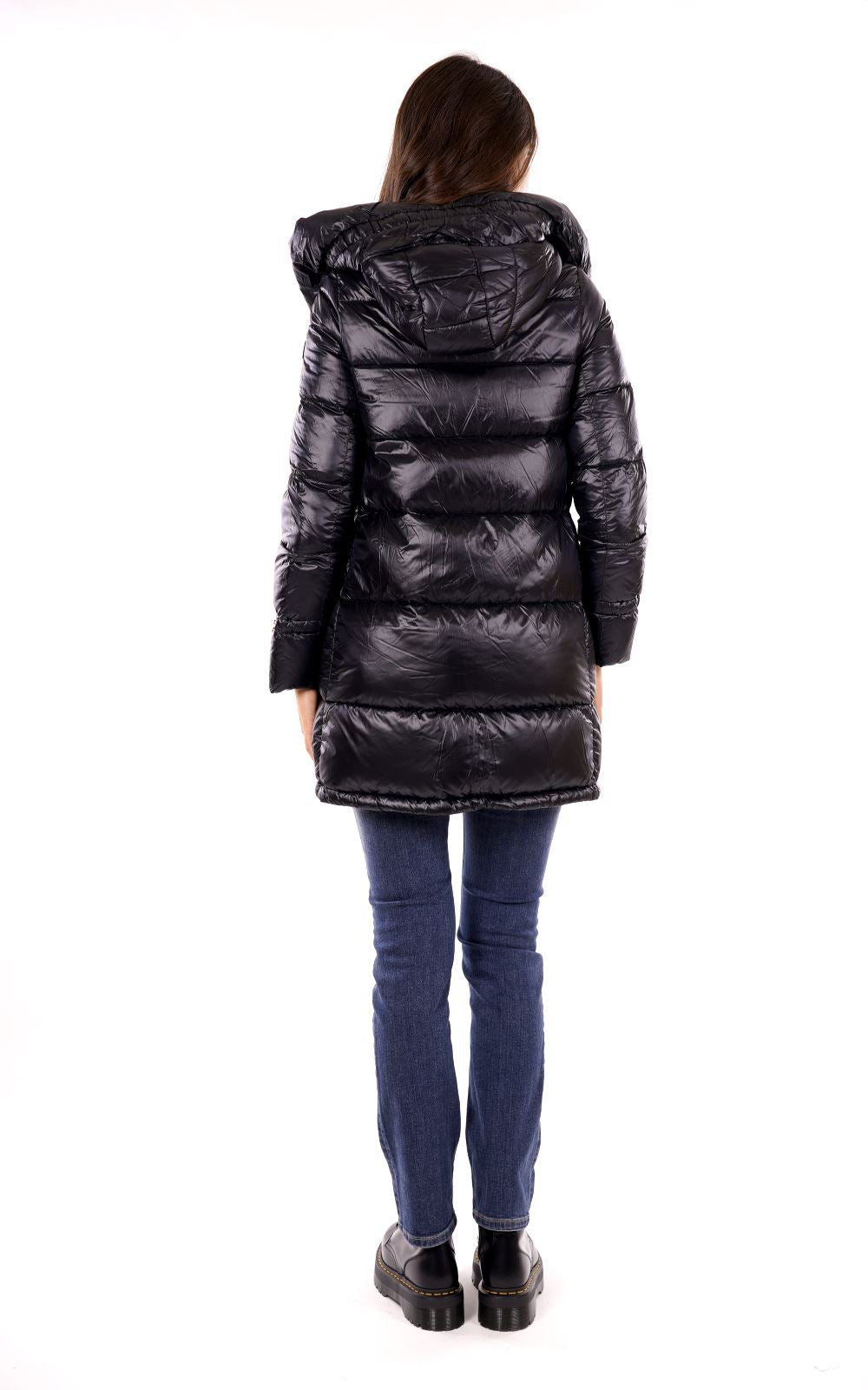 Piumino lungo trapuntato con cappuccio
