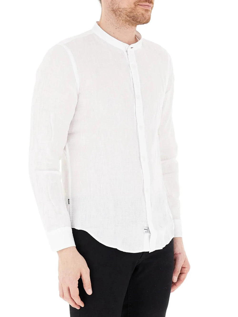 Camicia di lino con collo alla coreana Call
